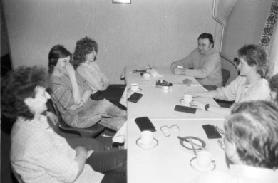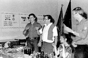 gesellschaftspolitische Veranstaltungen wurde in DDR-Betrieben viel Arbeitszeit geopfert, besser gesagt vergeudet. Hier eine FDJ-Veranstaltung, im Hintergrund erkennen wir Fritz Gaede und Joachim Maaßberg, der Redner ist möglicherweise von der FDJ-Stadtleitung. |